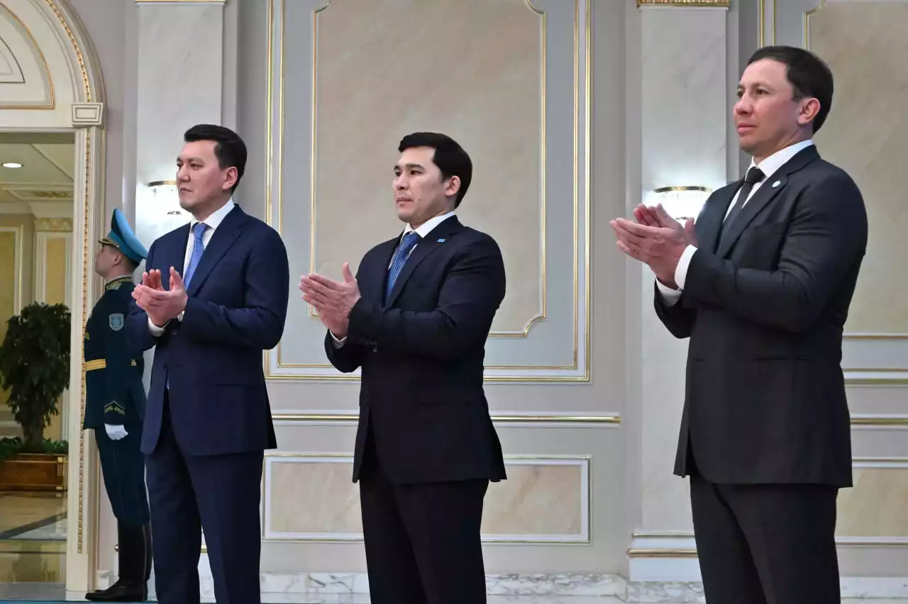 Қасым-Жомарт Тоқаев Қазақстан Республикасының Мемлекеттік туын Ұлттық құраманың мүшелері Денис Никиша мен Аяулым Әмреноваға және Қазақстан паралимпиадалық командасының мүшесі Ербол Хамитовқа табыстады.