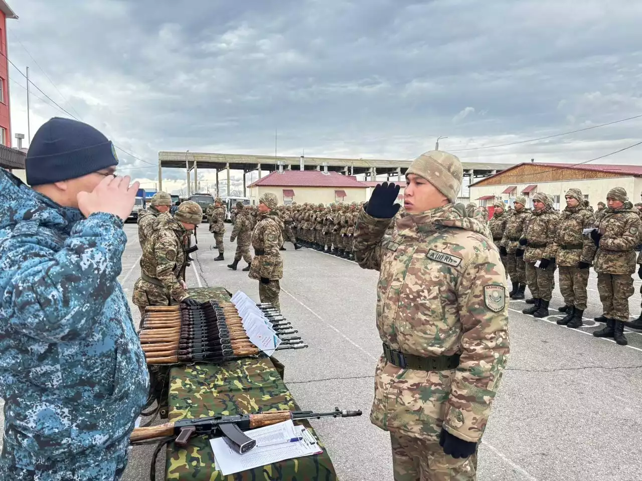 Жамбыл облысы бойынша Қылмыстық-атқару жүйесі департаментіне қарасты №59 мекемесінің режим бөлімі бастығы әділет подполковнигі Ринат Ақышевтың қатысуымен Ұлттық ұланның 5513 әскери бөлімінің жас сарбаздарына жеке қаруларын бекіту бойынша жоспарлы іс-шара өткізілді, деп хабарлайды arainfo.kz